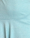Das Cynthia Kleid aus elfenbeinfarben schimmernder Rippe. Vollständig gefüttert Mini Kleid mit Bardot-Ausschnitt, kurzen Ärmeln und fließenden Nähten am Saum.